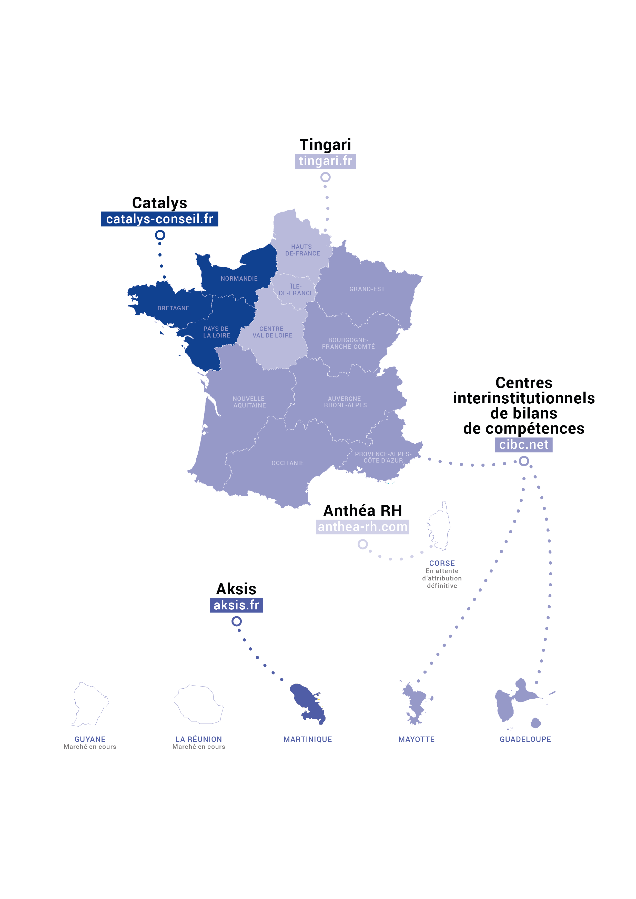 Depuis le 1er janvier 2020, en plus des opérateurs nationaux du conseil en évolution professionnelle (Pôle emploi pour les demandeurs d’emploi, l’Apec pour les cadres, Cap emploi pour les personnes en situation de handicap et les Missions locales pour les jeunes), le conseil en évolution professionnelle est délivré pour les actifs occupés hors agents publics par des opérateurs régionaux financés et sélectionnés par France compétences, sur la base d’un appel d’offres national.
